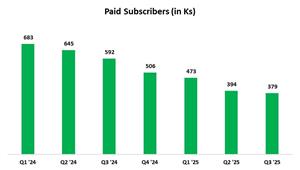 Over the past several quarters, our Paid Subscriber base has been in decline as a result of the aforementioned pivot in pricing strategy as well as elevated customer churn following the transition of the Legacy Research business. However, as seen in the chart below, during 3Q 2025, and continuing into October 2025, we are beginning to see stabilization of the Paid Subscriber base as customer acquisition is largely offsetting customer churn. We are focused on increasing our overall Paid Subscriber base while maintaining reasonable pricing.