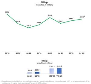 • Billings of approximately $290 million for FY 2026, which is growth of 10% from estimated FY 2025 Billings and a 40% increase from the annualized 2H 2024 Billings.